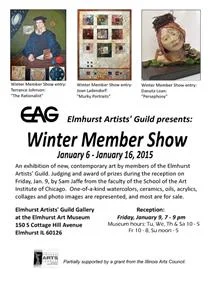 I will be the sole juror for the Elmhurst Artist's Guild’s Winter Member show. The reception is January 9th, 2015 from 7:00 PM - 9:00 PM at the Guild Gallery in the Elmhurst Art Museum which is located at 150 Cottage Hill in Elmhurst, IL 60126.