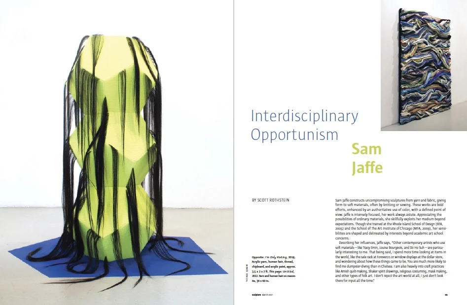 Contributor Scott Rothstein provided a thoughtful discussion of my "Interdisciplinary Opportunism" in Sculpture Magazine's March/April 2017 issue.